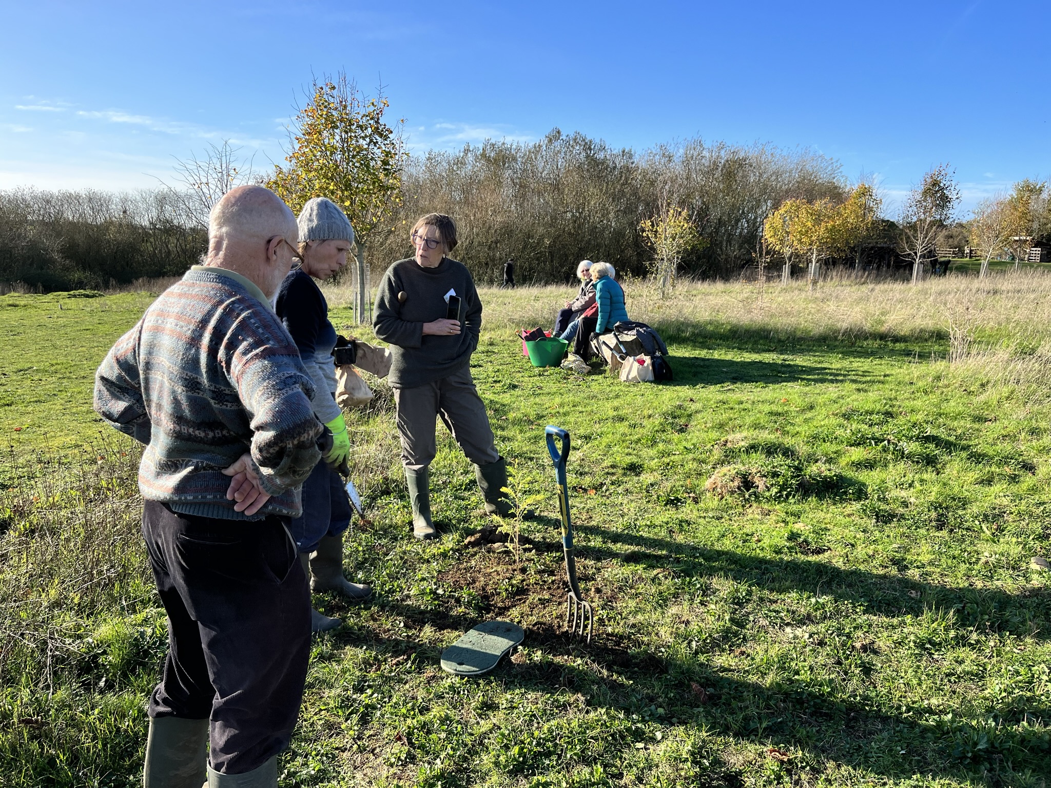 What a wonderful day we had on Saturday. The weather was absolutely beautiful - clear and warm allowing people to linger and chat and enjoy the view and the peaceful surroundings in between bouts of planting. It is lovely to see so many busy about the site, tending their graves and planting bulbs and plants elsewhere on site for everyone to enjoy. The willow bower got a trim and new growth was woven back in under the knowledgeable eye of Chris Park. Sue Smart (Sue smart landscaping) oversaw the bulbs and plants and Tony Hinkes led the tree planting party. Adam oversaw all of it and Becky organised all the pre orders and marking of plots. What did I do? Someone said to me “That was worth 10 hours of therapy. A joyous morning” and others shared the value of talking to others and being able to be open about their grief without feeling self-conscious or alone with it. It is really wonderful to see our dream of creating a community of people associated with the burial ground becoming a reality.